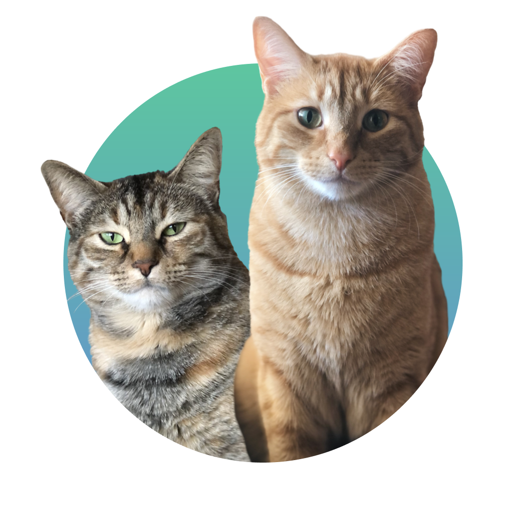This is Jones, our sweet and calm orange male tabby and his sister, Fishy - our mischievous female. These two are full on freeloaders and only ever want to be pet when we’re working on creative projects. They are completely spoiled and loved well.